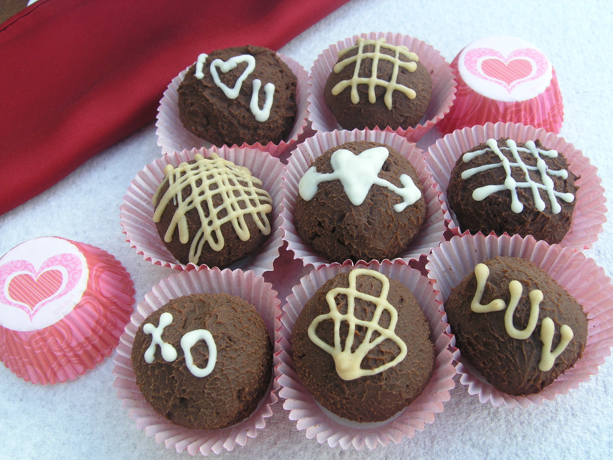 - For something slightly more elaborate, melt 1/4 cup white chocolate chips in the microwave (30 second increments again) and stir in 1/2 tsp of vegetable oil to make it loose and runny. Use a finely tipped squeeze bottle or a fork to drizzle decorations on the truffles with white chocolate. If you have flavored truffles, I like to make that apparent with the decoration. For peanut butter, melt 1 tbs peanut butter in the white chocolate. For lemon or orange, top with some fresh zest.