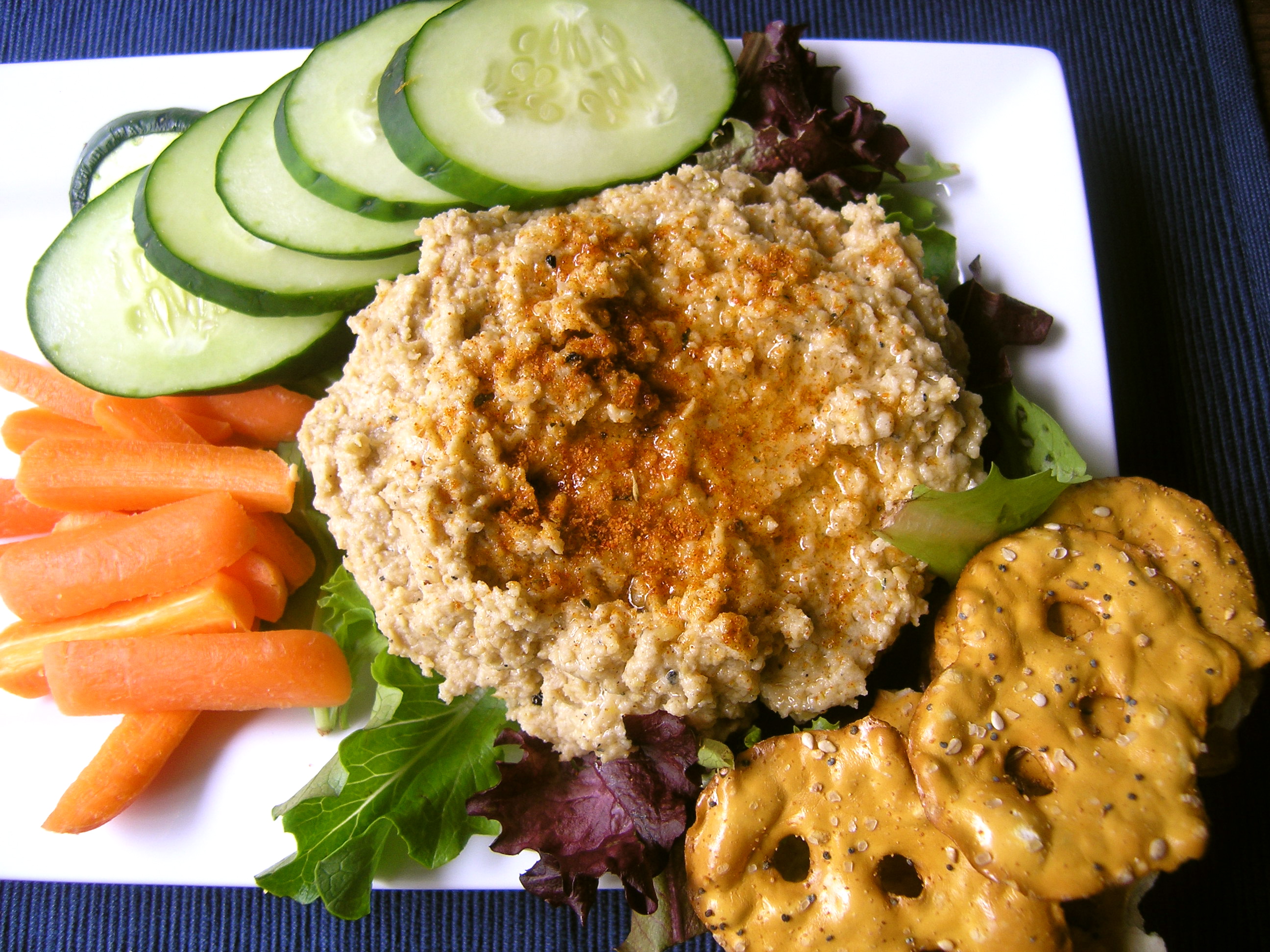 - Plate on a bed of lettuce and sprinkle with the paprika and a little bit of oil. Serve with your favorite dipping devices (baby carrots, cucumber slices, and bagel pretzel chips pictured).