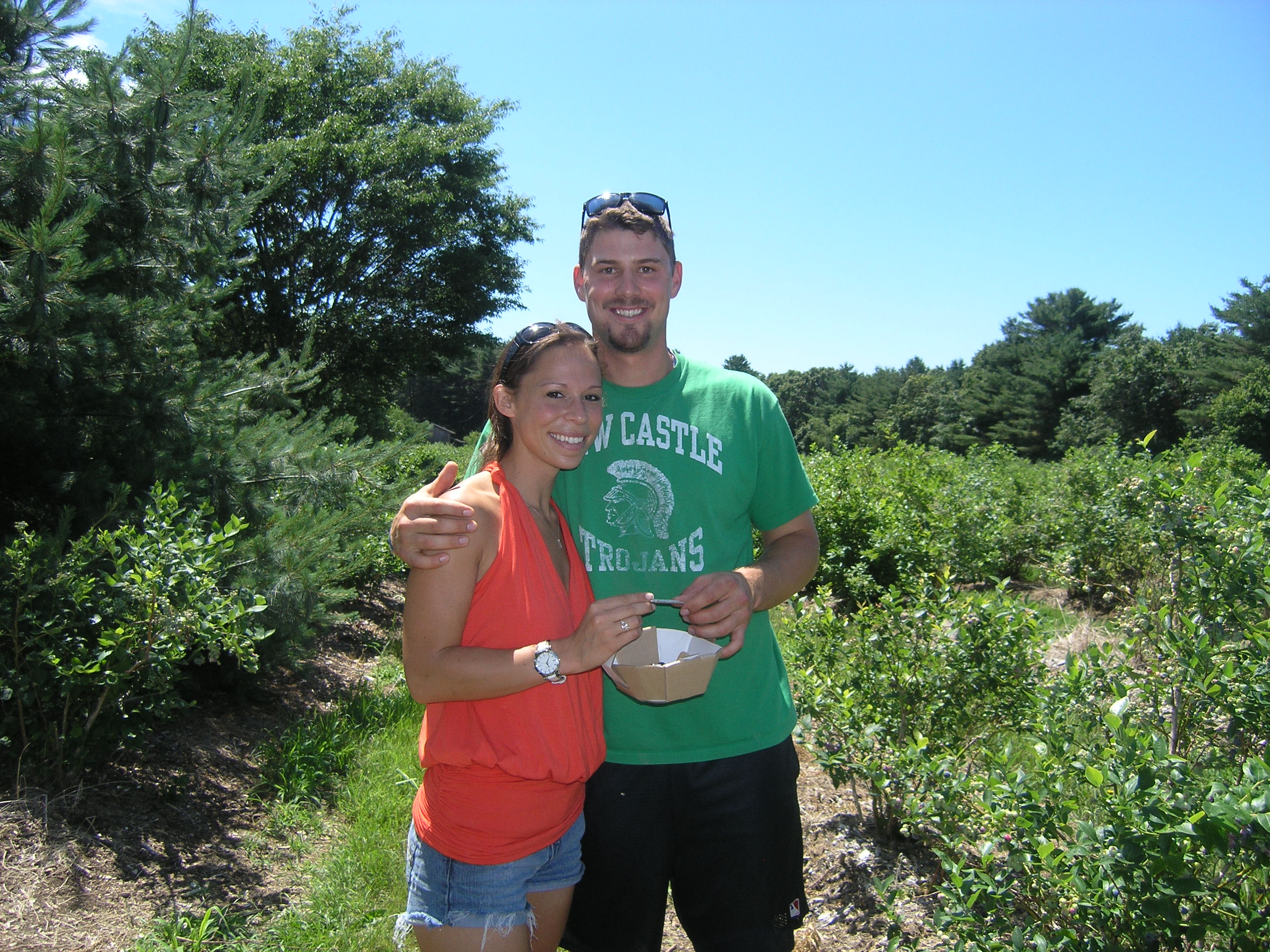The second inspiration is that blueberries are now in season here in New England! This is a totally foreign concept to this Colorado girl, so when I found out we could go blueberry picking this past homestand, I knew we were going. Ryan and I went with our new baseball friends the Repko family up to Ward’s Berry Farm in Attleboro, MA. You can buy different sized baskets and go pick-your-own berries. It was the most fun we’ve ever had for $6. I alloted Ryan about 1/3 of our pickings, and reserved the rest for these blueberry floats and Berry Cherry Cheesecake Bars (coming Friday).