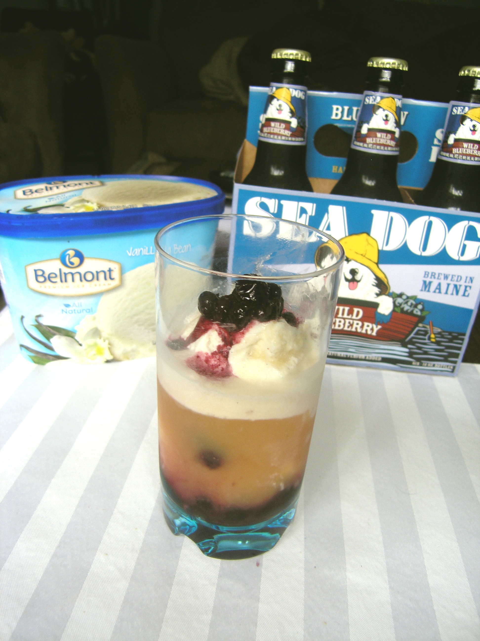 - Make the floats by layering a few tbs of compote and about 1/3 cup frozen yogurt into each glass. If you wanted to make ahead of time you can stop here and put into the freezer. To serve, add 1/2 of each beer to the glasses and another few tbs of blueberry compote on top. Let the beer settle before serving. Serve with a spoon and or straw for delicious consumption.