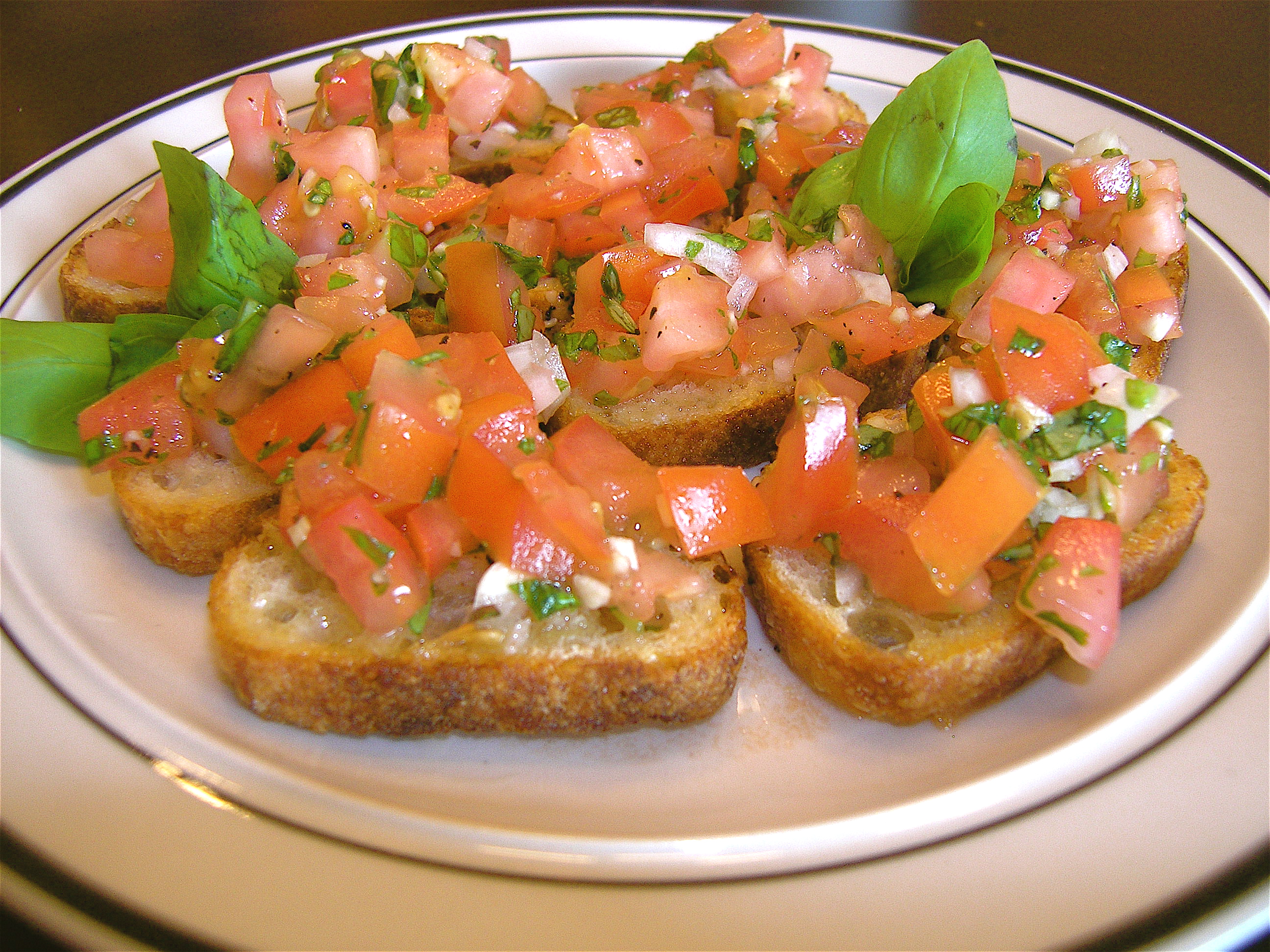 - Place a heaping tablespoon of tomato mix onto each crostini as close to serving as possible. If you want the appetizer to last for an extended time period, serve the tomato mix in a bowl with the toasts on the side for your guests to serve themselves.